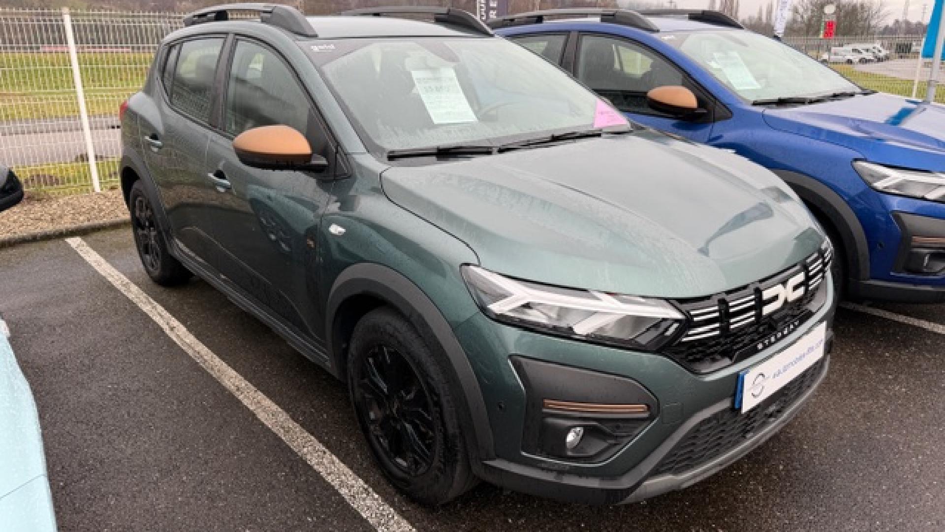 1 port USB-C pour l’arrièreABS avec aide au freinage d'urgenceAEBS Urbain + City : Système de freinage d'urgence avancé (piéton, deux-roues et intersection)Aide au démarrage en côteAide au stationnement arrièreAirbags conducteur et passagerAirbags latéraux épaules et rideauxAlerte de survitesse avec reconnaissance des panneaux de signalisationAlerte franchissement de ligne et assistant maintien dans la voieAntenne de toit « aileron de requin »Appel d'urgence - EcallBaguette décorative des antibrouillard Brun cuivréBanquette arrière rabattable et fractionnable 1/3-2/3Barres de toit longitudinales modulaires Gris MégalitheBoucliers avant et arrière ton carrosserieBouton "My Safety "Calandre avec inscription « Stepway » blancCaméra de reculCarte mains-libresCentre des aérateurs Cuivré et curseurs blancsChauffage et ventilation à 4 vitesses, avec recyclage de l’airClimatisation automatiqueCondamnation automatique des portes en roulantCondamnation des portes électrique avec télécommande à radiofréquencesConsole centrale haute avec accoudoir central et espace de rangementConsole centrale haute avec rangementsContour des aérateurs Fog GreyContours des aérateurs Gris fumé et curseurs blancsContrôle de pression des pneus ( TPMS )Design outdoor spécifique avec protections bas de porte et stickers latéraux avec motifs topographiquesDétecteur d'angle mortDétecteur de pluie et allumage automatique des projecteursDirection assistée électriqueDispositif d’antidémarreur éthylométriqueEnjoliveurs Brun Cuivré sur les panneaux de portes avantEnregistreur de données d’événements (accident)EPS : Contröle électronique de stabilitéExtended GripFeux arrière avec signature Dacia en YFeux clignotants latéraux répétés sur l'aileFeux de jour automatiques à LEDFrein de parking électriqueFrein de stationnement mécaniqueInscription « Stepway » Brun cuirvré sur les barres de toitJantes en aluminium 16” Mahalia noires avec logo Dacia Brun CuivréKit de gonflageLettrage Dacia arrière Brun CuivréLève-vitres arrière électriquesLève-vitres avant électriques conducteur et passagerLève-vitres conducteur impulsionnelle + commande côté passager avantLimiteur de vitesse avec avertisseur sonoreLunette arrière dégivranteMiroir de courtoisie côté conducteur et passagerNouvelle calandre avec nouveau Logo DaciaOrdinateur de bord : distance parcourue, vitesse moyenne, autonomie, consommation moyennePack NavigationPeinture Blanc GlacierPhares à double optique avec LEDPlafonnier avantPlancher de coffre à 2 niveauxPoignées de porte extérieures ton carrosserie de type réfrigérateurPoignées de portes intérieures Gris AcierPoignées de portes intérieures noiresPrétensionneurs de ceintures de sécurité (places avant et latérales arrière)Prise 12V à l'avantPrise USB avantProgramme Eco-modeProjecteurs antibrouillardRégulateur de vitesseRescue codeRétroviseurs extérieurs Brun CuivréRétroviseurs extérieurs réglables électriquementRevêtement en TEP Micro Cloud sur la planche de bord et les accoudoirs des portes avantSellerie spécifique Extreme TEP MicroCloudSeuil de porte avec motifs topographiquesSiège conducteur réglable en hauteurSignature lumineuse à LEDSkis avant / arrière Gris MégalitheStripping ExtrêmeSupport smartphone amovibleSystème de contrôle de trajectoire (ESC) et fonction antipatinage (ASR)Système de fixation Isofix pour siège enfant aux places latérales arrièreSystème de surveillance de l'attention du conducteurSystème Stop & StartTableau de bord avec décor fasciaTableau de bord avec écran numérique 3,5'' et compteurs analogiquesTapis caoutchouc avant + arrière avec motifs topographiquesVolant réglable en hauteurVolant réglable en profondeurVolant Soft Feel (TEP) avec nouveau logo Dacia