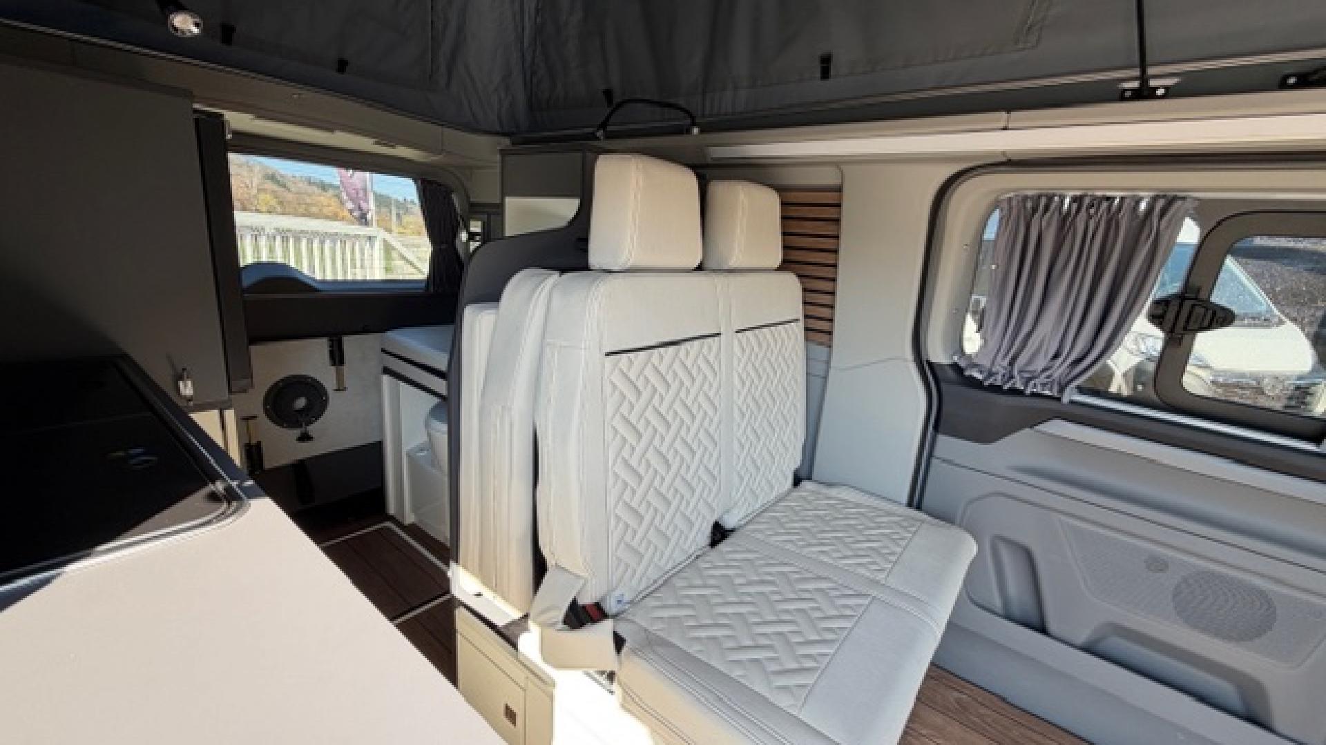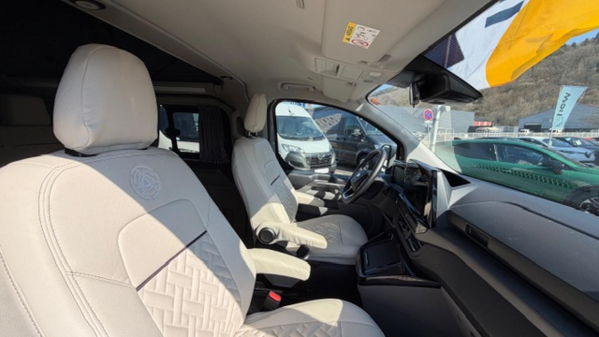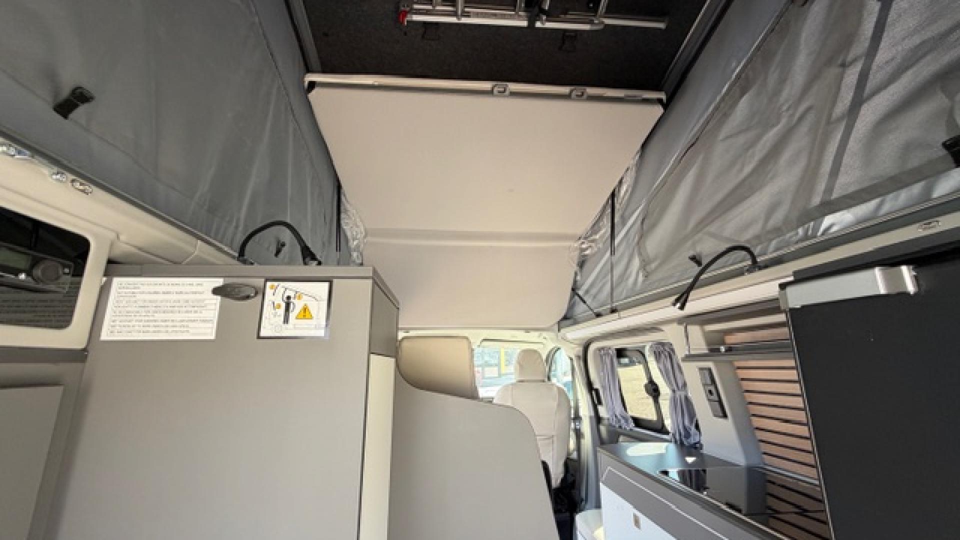 2 prises 230V au-dessus du plan de travail + 1 au seuil de porte 2ème rangéeAide au maintien dans la voieAide au stationnement arrièreAide au stationnement avantAir conditionné bi-zoneApple Carplay et Android AutoAssistance fermeture élec.porte coul.droiteAvertisseur de circulation à contre-sensBloc combiné cuisson intégré (2 feux + évier) avec couvercle formant plan de travailCaméra de reculChargeur smarphone par induction sans filChauffage stationnaire à brûleurChauffe-eau avec prise de douche extérieureEcran tactile sur penderie avec commande de l'éclairage intérieur, du chauffage, du réfrigérateur, inclinomètre, indicateur du niveau d'autonomie des batteriesFeux arrière à LEDJantes alliage 6,5" x 17" design Active en Y en Absolute BlackLimiteur de vitesse intelligentMobilier intérieur blanc avec plan de travail aspect cimentPack Assistance Conduite 5Pack Sièges avant 24 (2 places)Pare-brise chauffantPare-chocs arrière couleur carrosseriePare-chocs avant bi-ton noir/teinte carrosserieParquet façon bois "pont de bateau"Peinture opaque blanc GlacierPenderie 1 portePrise auxiliaire et USBProtections latérales couleur carrosserieReconnaissance des panneaux de signalisationRéfrigérateur 33 litres à tiroirRégulateur de vitesse adaptatif avec fonction Stop & GoRéservoir d'eau propre 33 litres avec chauffe-eauRéservoir d'évacuation des eaux grises 34 litresRétroviseurs extérieurs chauffants, réglables électriquement et rabattables électriquementStores occultants coulissants noirs (sur tous les vitrages arrière, y compris le hayon)Système d'infodivertissement SYNC 4 avec écran tactile 13"Système d'ouverture/fermeture+démarrage sans cléSystème de surveillance de la vigilance du conducteurSystème précollisionTable intérieure amovible stockée à côté de la banquette