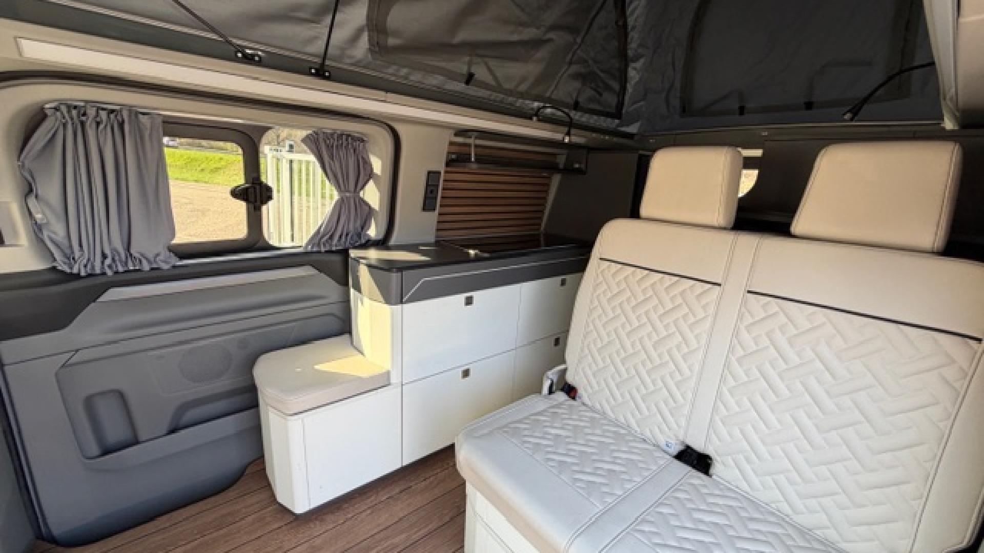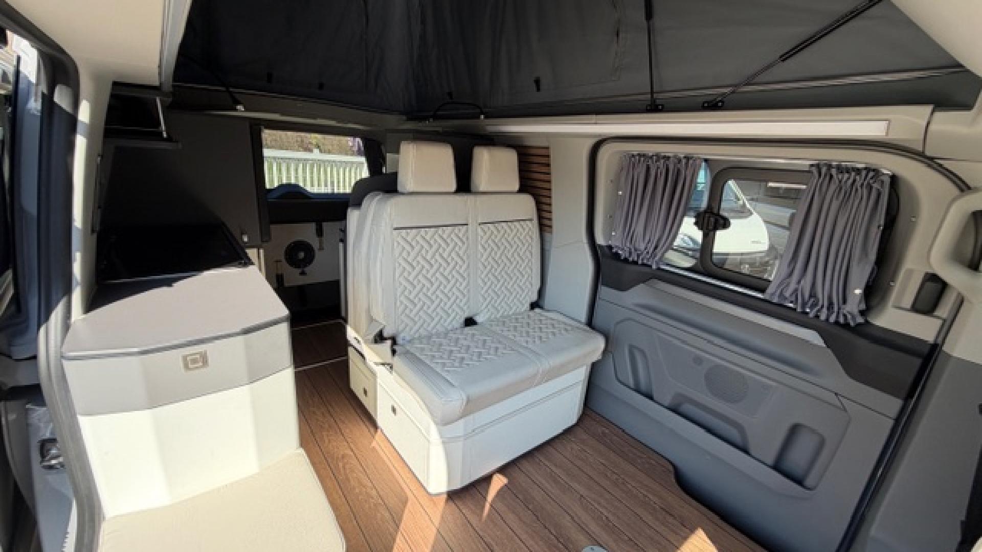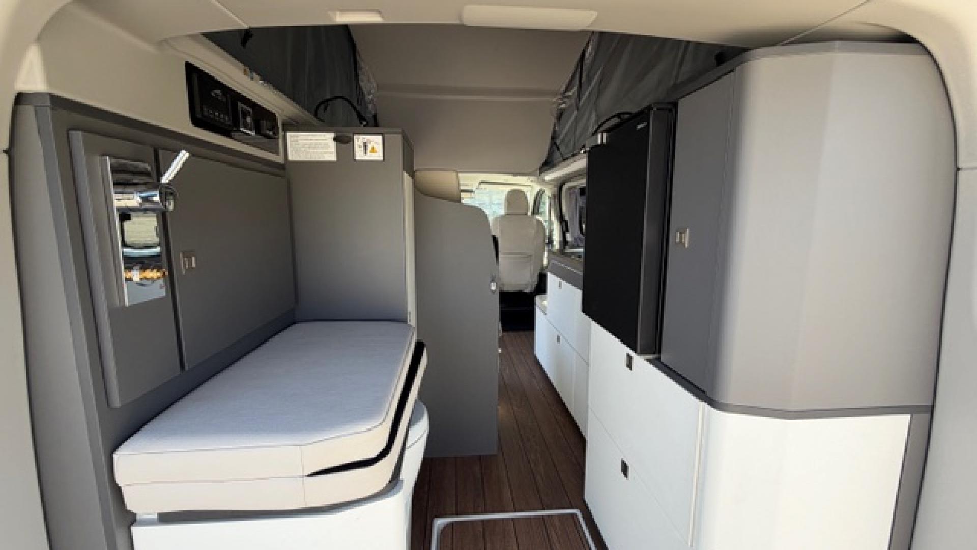 2 prises 230V au-dessus du plan de travail + 1 au seuil de porte 2ème rangéeAide au maintien dans la voieAide au stationnement arrièreAide au stationnement avantAir conditionné bi-zoneApple Carplay et Android AutoAssistance fermeture élec.porte coul.droiteAvertisseur de circulation à contre-sensBloc combiné cuisson intégré (2 feux + évier) avec couvercle formant plan de travailCaméra de reculChargeur smarphone par induction sans filChauffage stationnaire à brûleurChauffe-eau avec prise de douche extérieureEcran tactile sur penderie avec commande de l'éclairage intérieur, du chauffage, du réfrigérateur, inclinomètre, indicateur du niveau d'autonomie des batteriesFeux arrière à LEDJantes alliage 6,5" x 17" design Active en Y en Absolute BlackLimiteur de vitesse intelligentMobilier intérieur blanc avec plan de travail aspect cimentPack Assistance Conduite 5Pack Sièges avant 24 (2 places)Pare-brise chauffantPare-chocs arrière couleur carrosseriePare-chocs avant bi-ton noir/teinte carrosserieParquet façon bois "pont de bateau"Peinture opaque blanc GlacierPenderie 1 portePrise auxiliaire et USBProtections latérales couleur carrosserieReconnaissance des panneaux de signalisationRéfrigérateur 33 litres à tiroirRégulateur de vitesse adaptatif avec fonction Stop & GoRéservoir d'eau propre 33 litres avec chauffe-eauRéservoir d'évacuation des eaux grises 34 litresRétroviseurs extérieurs chauffants, réglables électriquement et rabattables électriquementStores occultants coulissants noirs (sur tous les vitrages arrière, y compris le hayon)Système d'infodivertissement SYNC 4 avec écran tactile 13"Système d'ouverture/fermeture+démarrage sans cléSystème de surveillance de la vigilance du conducteurSystème précollisionTable intérieure amovible stockée à côté de la banquette