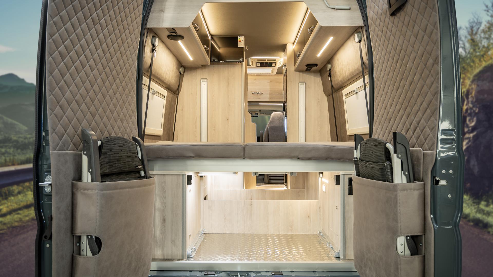 Le lit arrière est réglable en hauteur électriquement