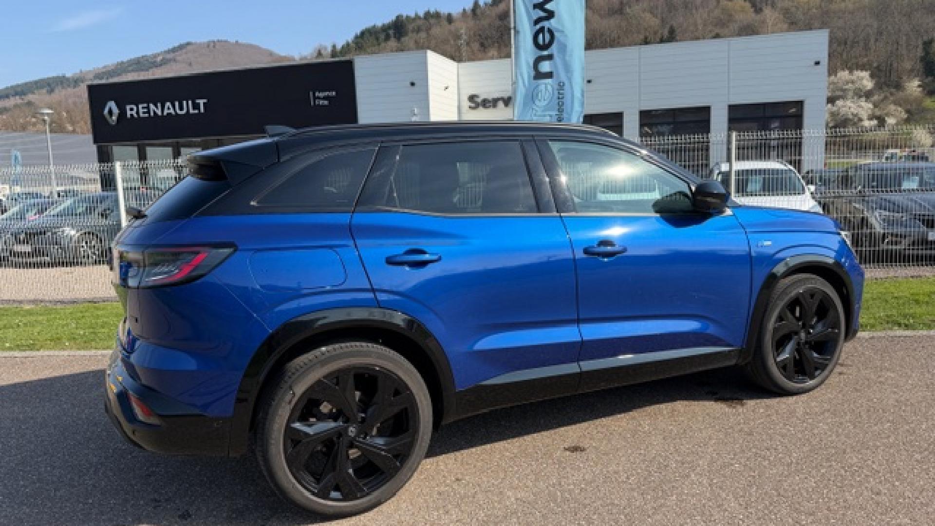 Active driver assist : assistant de conduite avec contrôle longitudinal et latéral du véhiculeAide au démarrage en côteAide au maintien dans la voieAide au parking avant et latéralAide au stationnement arrièreAlerte de changement de voie intempestifAlerte de franchissement de ligneAlerte distance de sécuritéAllumage automatique des essuie-glacesAntenne de type requin noir étoiléAppuis-tête avant grand confortAuto-update inclus pendant 5 ansBanquette arrière coulissante 1/3-2/3 avec accoudoir centralBarres de toit longitudinales noires satinéesBouclier avant avec lame sport gris satinCalandre à damier ice blackCaméra de reculCarte Renault, accès et démarrage « mains-libres »Chargeur de smartphone par inductionClimatisation automatique bi-zoneDécors de planche de bord et panneaux de portes AlcantaraEclairage intelligent (commutation automatique feux de croisement/feux de route)Feux arrière à effet 3D à LEDFeux clignotants arrière dynamiquesFeux LED adaptive vision (avec fonction antibrouillard intégrée)Frein à main automatiqueFreinage d'urgence autonome avec fonction intersectionFreinage d’urgence automatique urbain/péri-urbain avec détection piétons et cyclistesHayon motorisé avec ouverture mains-libresJantes alliage 20" daytona diamantées noirLimiteur de vitesseLogo avant et arrière ice blackMonogramme gris satinéNotice d’utilisation digitale embarquée dans le système multimédia du véhiculeOpen R Link 12": système multimédia avec google intégré incluant pack navigation (Google Mpas et Google Assistant) pendant 5 ans et pack infotainment (Google Play) avec 3 GBPack Advanced Driving AssistPack City PremiumPack Comfort PremiumPack remote services (via l'application My Renault) inclus pendant 5 ansPack SafetyPédalier en aluminiumPeinture Rouge FlammeRenault MULTI-SENSE (choix des modes de conduite)Réplication smartphone compatible Android Auto & Apple CarPlayRétroviseur intérieur électrochrome sans contourRétroviseurs rabattables électriquementSellerie Mixte tissu et Alcantra avec surpiqûres bleuesSiège passager électrique à mémoiresSystème d'appel d'urgenceSystème de surveillance de la vigilance du conducteurTableau de bord open R 12,3"Traitement sonore Arkamys Auditorium avec 6 haut-parleursVitres teintées arrièresVolant gainé cuirVolant spécifique avec insert Alcantara