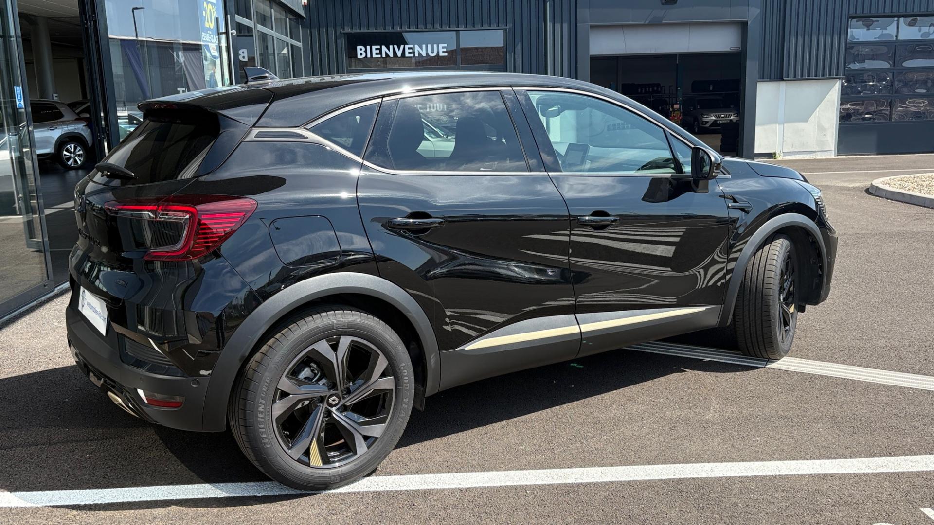 2 prises USB à l'arrièreABS avec aide au freinage d'urgenceAccoudoir / console centrale avec rangementAide au démarrage en côteAide au stationnement arrièreAide au stationnement avant et arrière + caméra de reculAirbags frontaux et latéraux (tête thorax),conducteur et passagerAirbags rideaux avant et arrièreAlerte de survitesse avec reconnaissance des panneaux de signalisationAlerte distance de sécuritéAlerte oubli des ceintures de sécurité aux 5 places avec détection des occupantsAllumage automatique des essuie-glacesAllumage automatique des projecteursAnimation de planche de bord façon "carbone" en matériau softAntenne de toit « aileron de requin »Appel d'Urgence RenaultAssistance au maintien de voieBadge E-Tech engineered sur porte conducteurBandeau supérieur de décor noir brillantBanquette arrière coulissante, rabattable 1/3-2/3 avec 3 appuis-têtes réglables en hauteurBouclier avant spécifique E-Tech engineered avec lame F1 de couleur warm titanium et grille nid-d’abeillesCarte Renault mains-libresChargeur de smartphone par inductionClimatisation automatiqueCoiffe supérieure de planche de bord mousséeCondamnation électrique centralisée des portes avec télécommande et condamnation des portes en roulantConsole centrale flottante, avec levier de vitesse e-shifterDécor sur ailes avant noir brillantDécors warm titanium sur volantDésactivation manuelle de l'airbag passagerDiffuseur d’air arrière peint en noir brillantDouble canule peinte en warm titaniumEASY LINK avec écran 9.3'' et navigation répliquée dans tableau de bordEclairage avant et arrière Full LED Pure Vision avec signature lumineuse en forme de « C »Eclairage intelligent (commutation automatique feux de croisement/feux de route)Entourage de levier de vitesse en chrome satinéESC (contrôle électronique de la trajectoire)Frein de parking électrique avec fonction Auto-HoldFreinage actif d'urgence avec détection des piétons et cyclistesJantes alliage 18” avec vernis teinté et détails warm titaniumKit gonflage de réparationLécheurs de vitres noirsLève vitres électriques avant et arrière impulsionnelsLigne horizontale de couleur warm titanium sur l’aérateur de planche de bordMode EcoMontants avant, milieu et arrière noirs brillantsPlafonnier éclairage LEDPlanche de bord, harmonie noirePlancher de coffre modulable 2 positionsPoches aumônière au dos des sièges avantPoignées de portes intérieures finition chrome satinéProtection de porte couleurs warm titanium et noirReconnaissance des panneaux de signalisationRégulateur et limiteur de vitesseRenault MULTI-SENSE, personnalisation des modes de conduites et ambiance intérieures (3 mode pré-définis: MY SENSE, ECO, SPORT)Réplication smartphone compatible Android Auto & Apple CarPlayRétroviseur intérieur électrochrome sans contourRétroviseurs extérieurs réglables, rabattables électriquement et dégivrantsSellerie cuir/suédine aux surpiqures Warm TitaniumSeuils de porte Warm TitaniumSiège conducteur réglable en hauteurSiège passager réglable en hauteurSièges Sport avec maintien latéral renforcéSkis avant et arrière GrisSystème de détection de la pression des pneusSystème de fixation ISOFIX aux places latérales arrière et passager avantTableau de bord avec écran numérique et personnalisable 10''Tableau de bord numérique 10’’ personnalisableVitres latérales et lunette arrière surteintéesVolant en cuir perforé, surpiqûres warm titanium et grisesVolant réglable en hauteur et en profondeur
